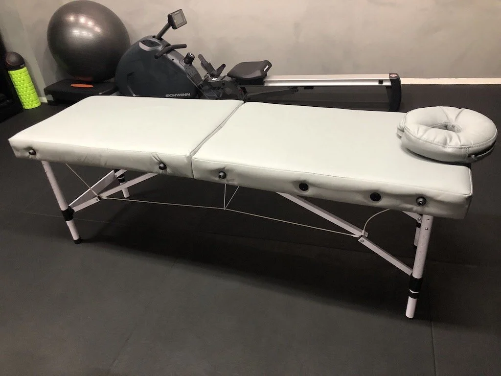 藤沢エリアのTHE PERSONレンタルジム藤沢には折りたたみ式のケアベッドがあります。トレーニング前後でリリースやストレッチをする際に使用できます。最近では、1つ1つのトレーニング効果を高めるために硬さを改善するメディカルトレーナーも増えております。