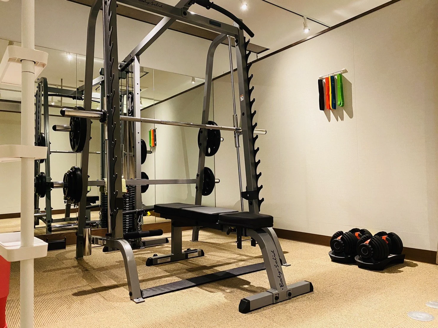 ワンルーム 17 ㎡ に スミスマシン(15 kg シャフト)+ 20 kg フリーシャフト&プレート 187.5 kg を凝縮し、可変式ダンベル 24 kg・ラットマシン・MAG グリップで本格トレが可能。シャワー&タオル&ウォーターサーバー付きで、“東銀座駅改札 → 30 秒で着替え → 1 時間 2,532 円トレ → そのまま銀座ランチ”というスマートな利用動線を実現します。