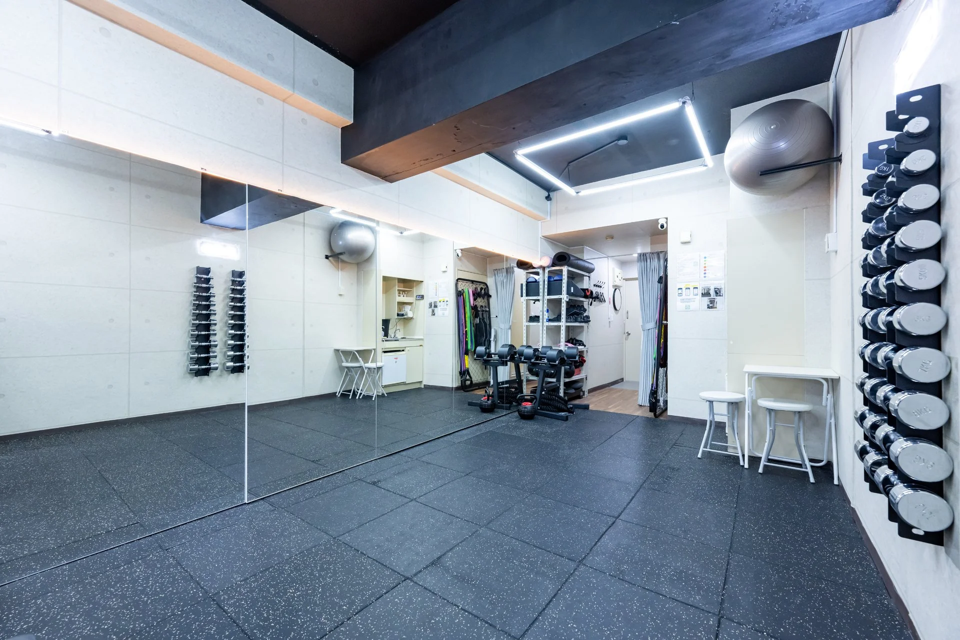 THE PERSONレンタルジム東五反田は、五反田駅から徒歩1分。天井高3 m・幅4.5 m鏡の開放的な30 ㎡スタジオに5-INマルチラック(120 kgプレート)とNUO可変式ダンベル32 kg×2を中心とした50種超の備品を完備し、パーソナルトレーニングからキックミット、ストレッチ施術まで幅広いニーズに対応。1時間2,200円で、トレーナーもクライアントも満足できる“映える”駅チカジムをぜひ体験してください。