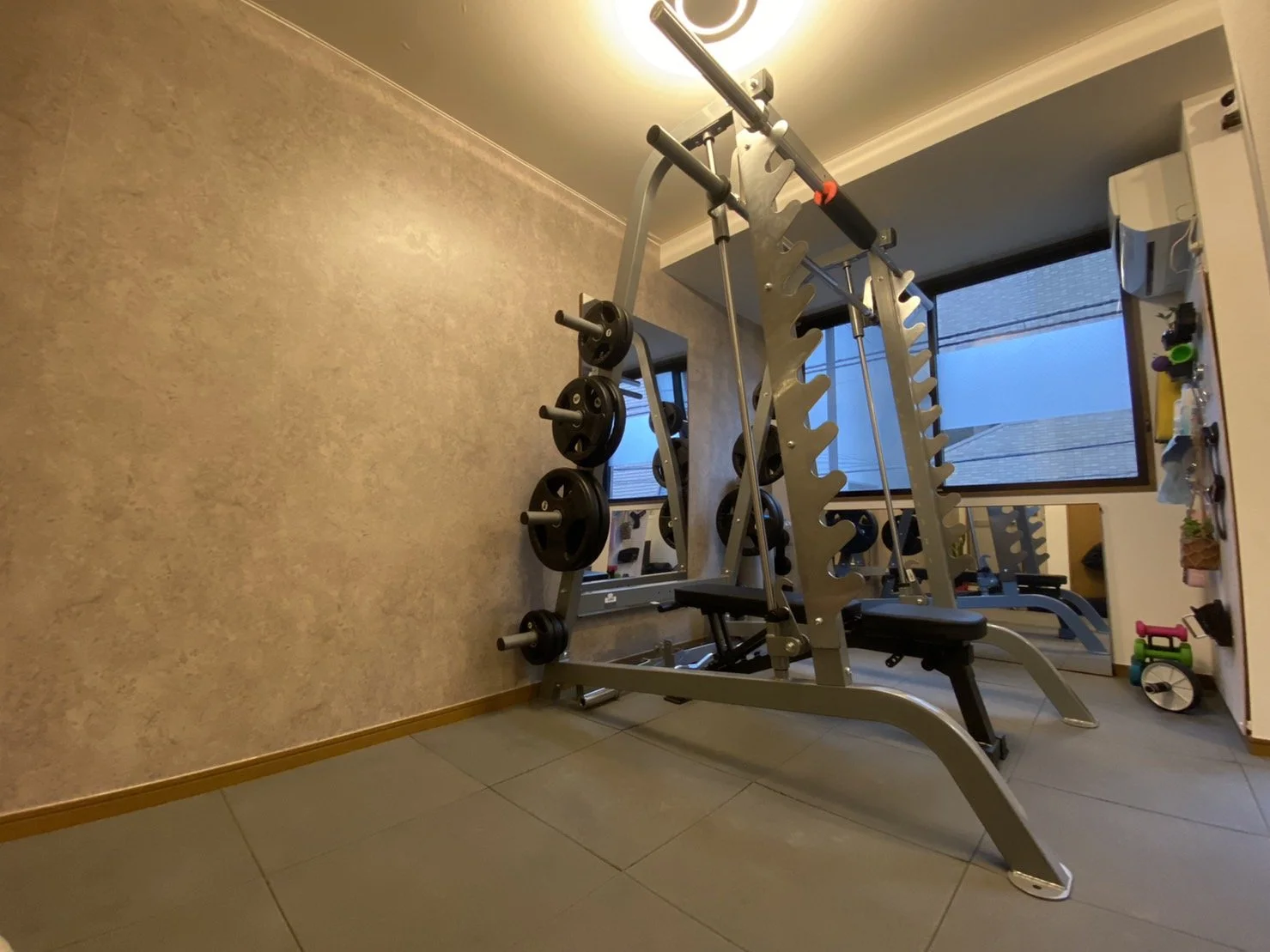 パワーラック+スミスマシン でスクワット・ベンチ・デッドも軌道固定トレも 1 台完結。