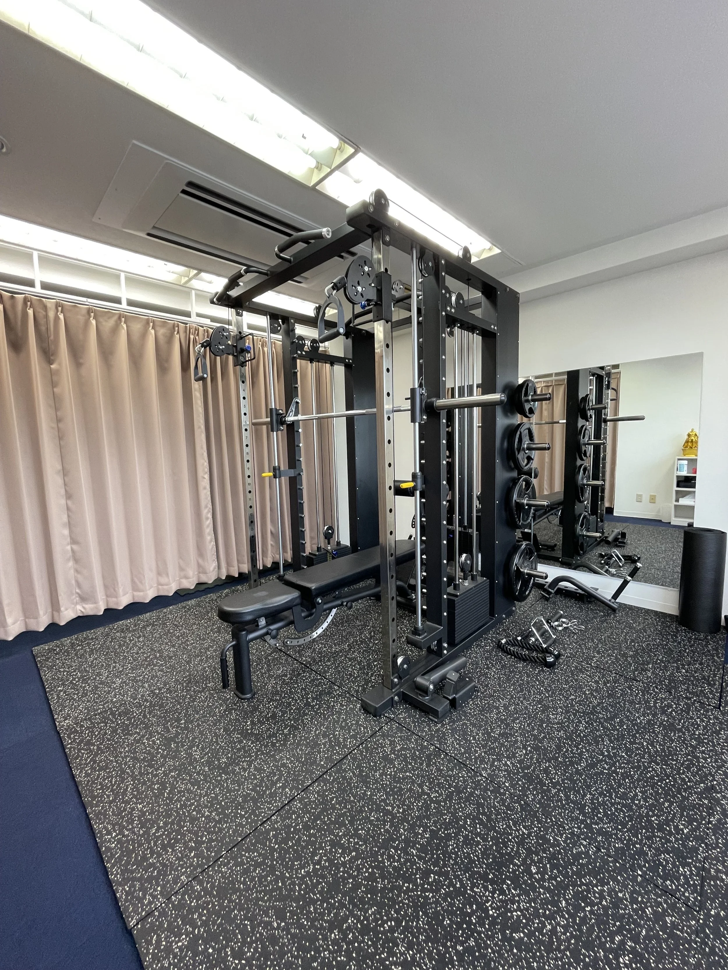 THE PERSONレンタルジム駒沢西 は、駒沢大学駅西口から徒歩1分。36 ㎡ のゆとり空間に 3-in-1パワーラック(パワーラック/スミス/ケーブル一体型) と可変式ダンベル(〜32 kg)を備え、BIG3からプル系まで幅広く対応します。1時間 2,400 円 で最大3名まで貸切OK——ジョギング前後のウェイト補強やマンツーマントレに最適な “駒沢公園そばの駅チカジム” をぜひご体験ください。