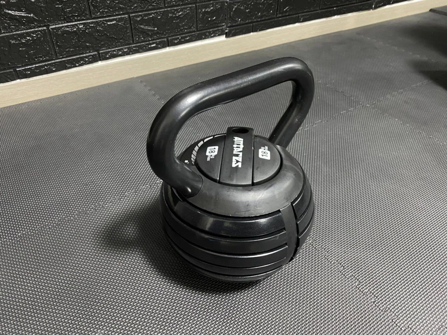 可変式タイプのケトルベルは珍しく、女性の方も安心して使える重さから設定ができるようになっております。ケトルベルはケトルベルスイングなどでお尻のトレーニングによく使われています。