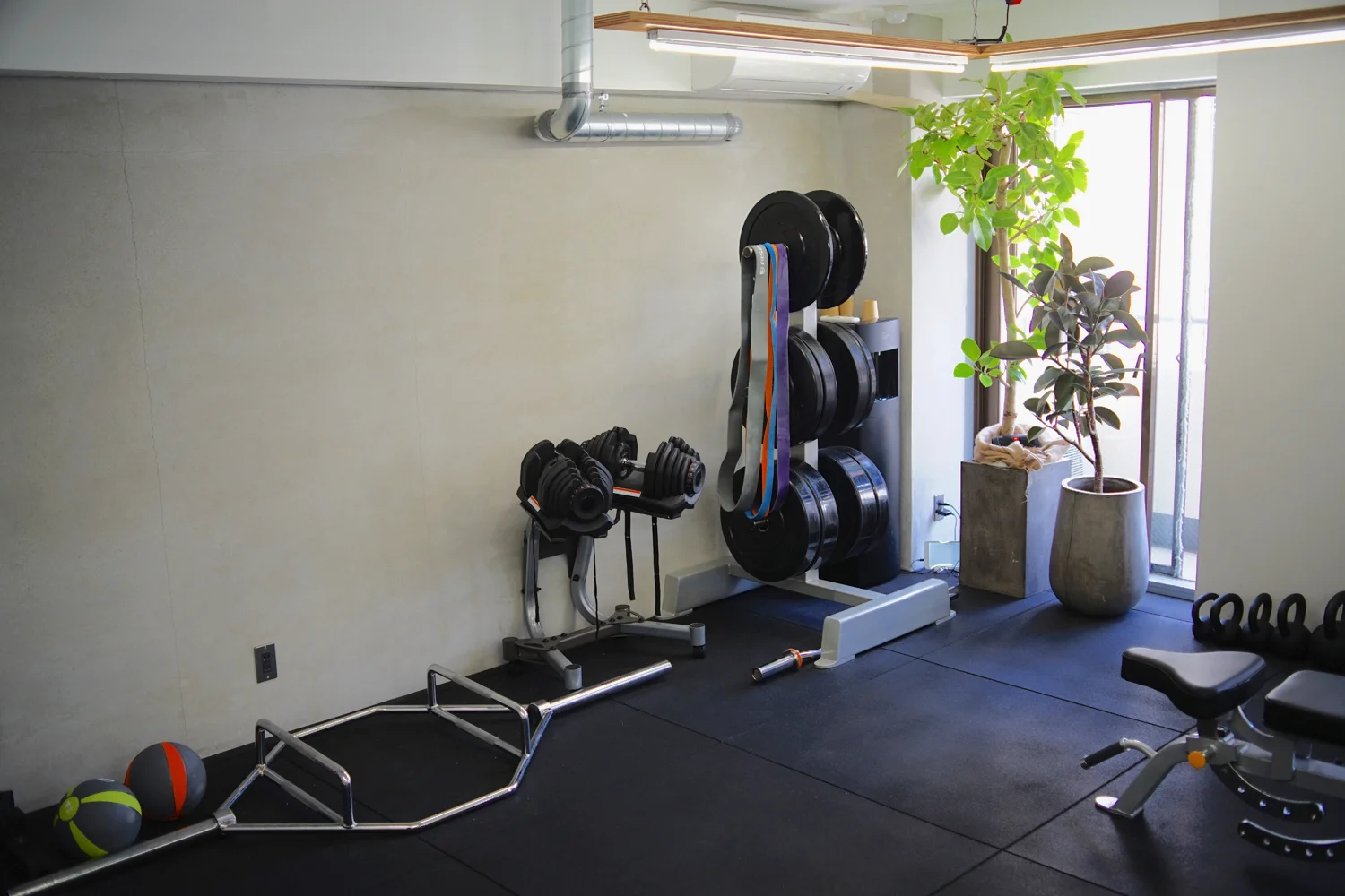 完全個室のプライベートジムとして利用が可能で、フリーランスで活動するパーソナルトレーナー、ヨガインストラクターが、シェアリングジムとして様々な方にご利用いただいております。スクワットやベンチプレス、ダンベルを使ったハードなトレーニングから、TRXやマットを利用した自重トレーニング、ファンクショナルトレーニングまで幅広いトレーニングが出来るシンプルな空間です。