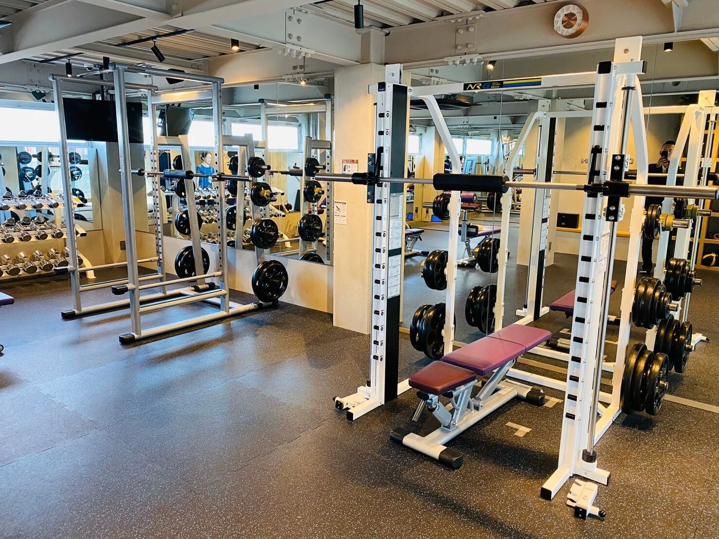 トレーニングだけではなく、その空間から楽しむことができるためトレーニングに対してもモチベーションが上がること間違いなしです。もちろん施設内の器具も充実しておりパワーラックはラットプルダウンなどのケーブルトレーニングができるようになっており、背中や胸、腕周りもしっかり追い込むことができます。