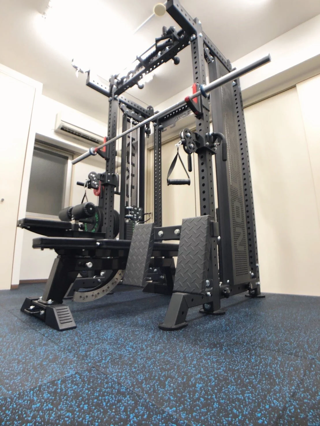 イチオシポイント | スミスマシンとパワーラックの双方を完備した90㎡プライベートジム |