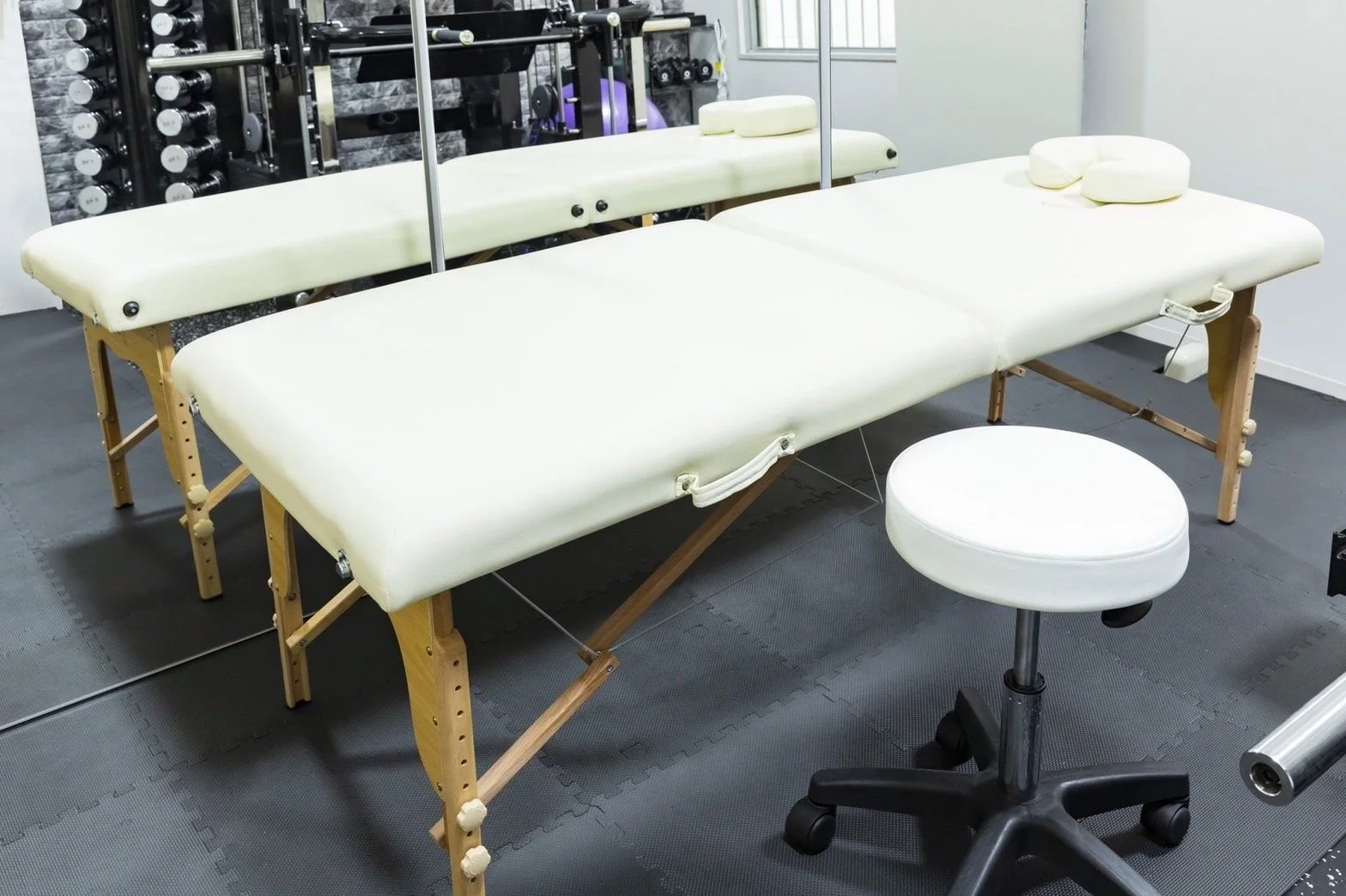 マッサージベッド 常設でトレーニング後のケアからストレッチ施術までワンストップ。