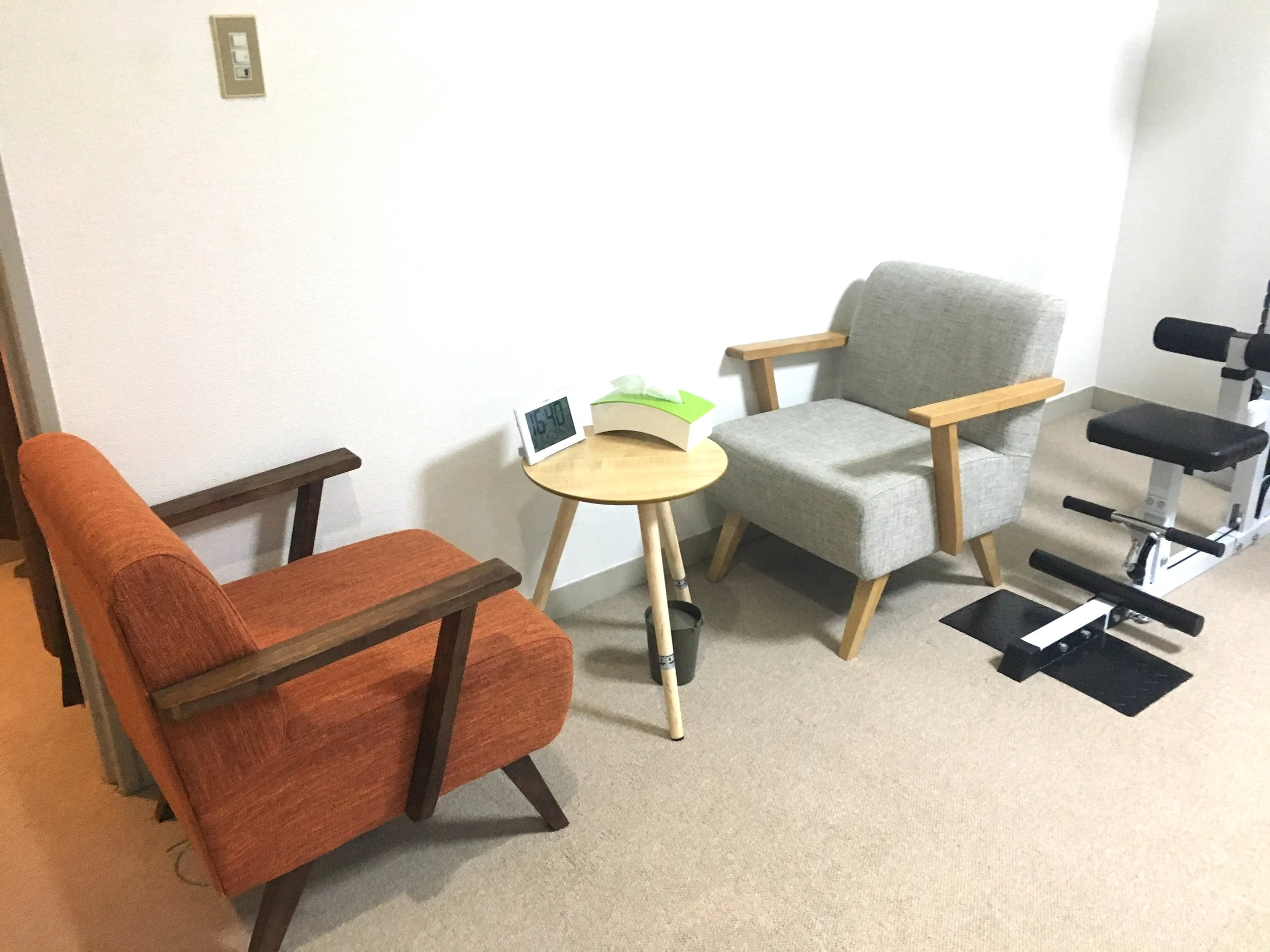 清潔感のある内装のTHE PERSONレンタルジム表参道・原宿は、ゆったりとしたソファーのカウンセリングテーブルも完備。落ち着いて相談ができます。