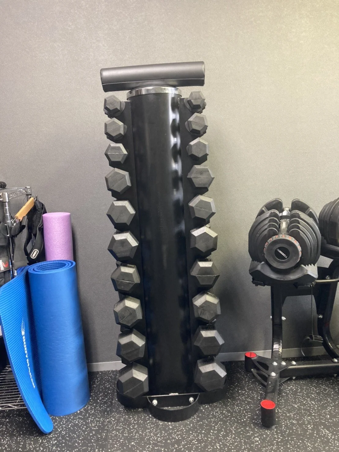 ダンベル1–10kg/可変式ダンベル5–40kg/プレート最大182.5kg で幅広い負荷レンジを実現。